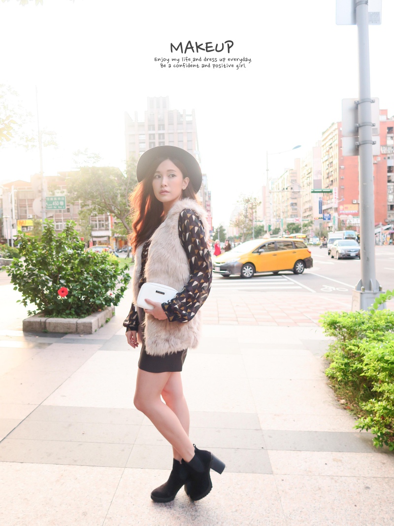 搭配小奢華的仿皮草背心,不過分驕縱的低調感